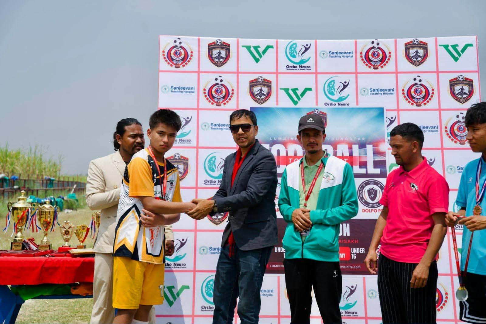 विजयी खेलाडीहरूलाई कार्यक्रमका प्रमुख अतिथि नेपाल पत्रकार महासंघका केन्द्रीय सचिव तथा घोराही बनाउ अभियानका संयोजक सविन प्रियासन, लुम्बिनी फुटबल एकेडेमीका सञ्चालक समिर ओली लगायत अतिथिहरूले ट्रफी, मेडल र प्रमाणपत्र प्रदान गरेका थिए।
